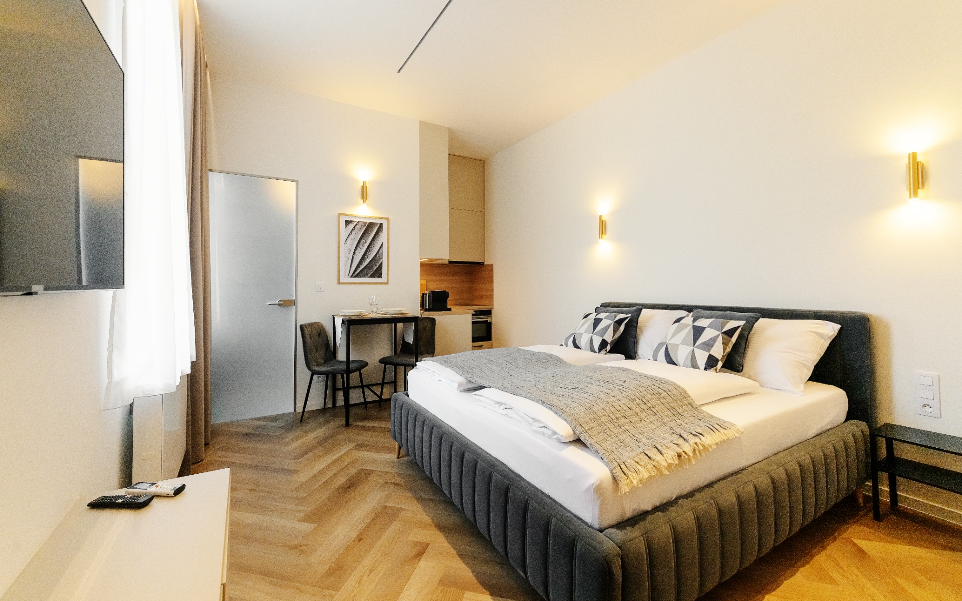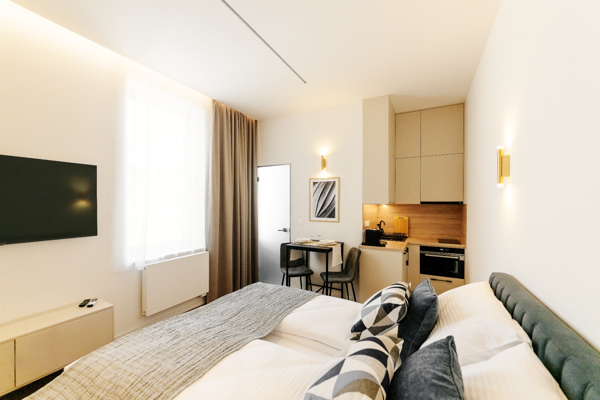Welcome to a place where rhythm of the city meets elegance and comfort. This newly furnished apartment in the heart of Brno will enchant you with its atmosphere, design, and perfect location. It is designed to provide maximum comfort for two guests. Apartment No. 402 offers everything you could imagine from stylish accommodation in the middle of the city. This modern interior features a double bed, a fully equipped kitchenette, and an elegant bathroom with a shower and washing machine.